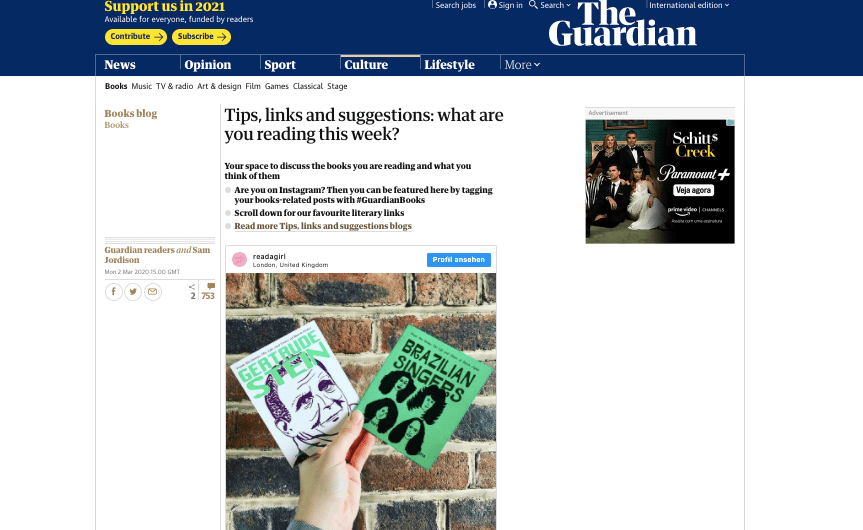 Read a Girl started after I realised that even though I was an avid reader, my reading list was dominated by men. I set myself up to start reading more women and documented my findings on a Facebook page that later developed into a monthly newsletter and an Instagram profile.